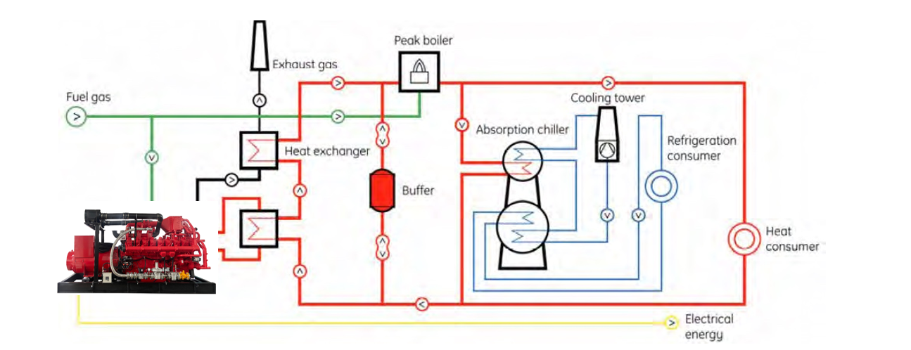 ระบบ CCHP สำหรับการผลิตพลังงานก๊าซที่พัฒนาโดย TONTEK POWER ถือเป็นโซลูชันที่ยอดเยี่ยมสำหรับการปรับอากาศและ/หรือทำความเย็น อุปกรณ์ผลิตไฟฟ้าร่วมมีประสิทธิภาพสูงและปล่อยมลพิษต่ำ เครื่องทำความเย็นแบบดูดซับนี้ประหยัดและเป็นมิตรต่อสิ่งแวดล้อม ใช้งานแทนเครื่องทำความเย็นแบบอัดแบบดั้งเดิม เมื่อรวมสองสิ่งนี้เข้าด้วยกัน จะสามารถประหยัดพลังงานได้อย่างครอบคลุม หลีกเลี่ยงการใช้สารทำความเย็นประเภทคลอโรฟลูออโรคาร์บอน/ฟลูออโรคาร์บอน และลดมลพิษทางอากาศ