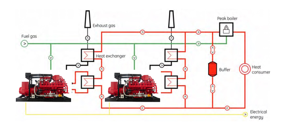 ระบบผลิตไฟฟ้าร่วมสำหรับหน่วยผลิตไฟฟ้าก๊าซธรรมชาติที่พัฒนาโดย TONTEK POWER ใช้ความร้อนเหลือทิ้งที่เกิดขึ้นระหว่างการทำงานของเครื่องยนต์เพื่อเพิ่มประสิทธิภาพการใช้พลังงานโดยรวมของโรงไฟฟ้า โครงสร้างพื้นฐานของระบบนี้ประกอบด้วยชุดเครื่องยนต์/เครื่องกำเนิดไฟฟ้า และอุปกรณ์แลกเปลี่ยนความร้อนที่นำความร้อนเหลือทิ้งมาใช้ ซึ่งรวมถึงน้ำหล่อเย็นเครื่องยนต์ น้ำมันหล่อลื่น อุปกรณ์ผสมอากาศ/ก๊าซ และก๊าซไอเสีย แหล่งความร้อนเหลือทิ้งต่างๆ ได้รับการกำหนดค่าเพื่อให้ลูกค้าได้รับประโยชน์สูงสุด โซลูชันของเราช่วยให้การผลิตไฟฟ้ามีความยืดหยุ่น และรับประกันความน่าเชื่อถือและความพร้อมใช้งานของการผลิตไฟฟ้าร่วม